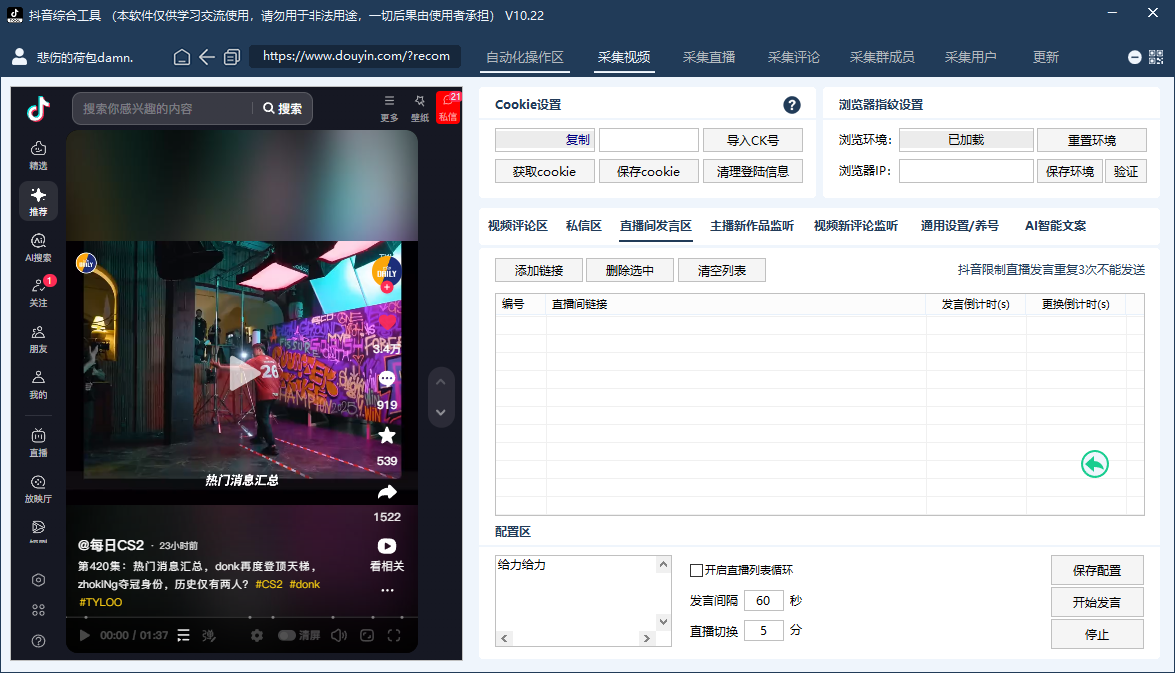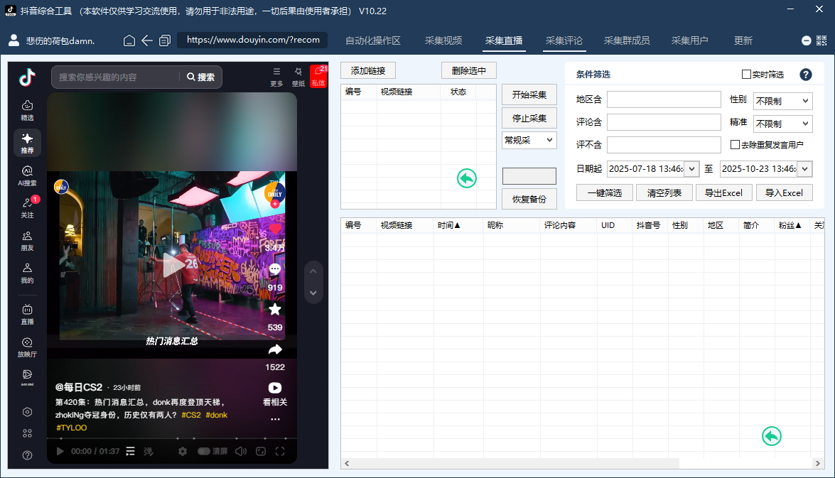 抖音综合工具-评论区采集-直播采集-监听评论-自动关注私信-自动评论点赞-截流养号