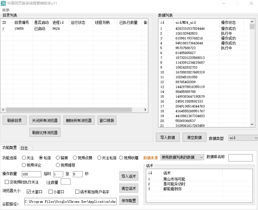 【新品】抖音网页版多线程营销助手-自动关注私信-留痕-视频点赞收藏多开